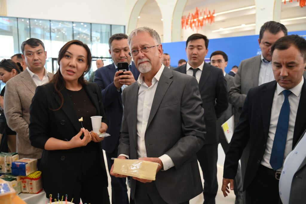 Сначала во дворце «Қызғалдақ» была организована выставка товаров шымкентских компаний.